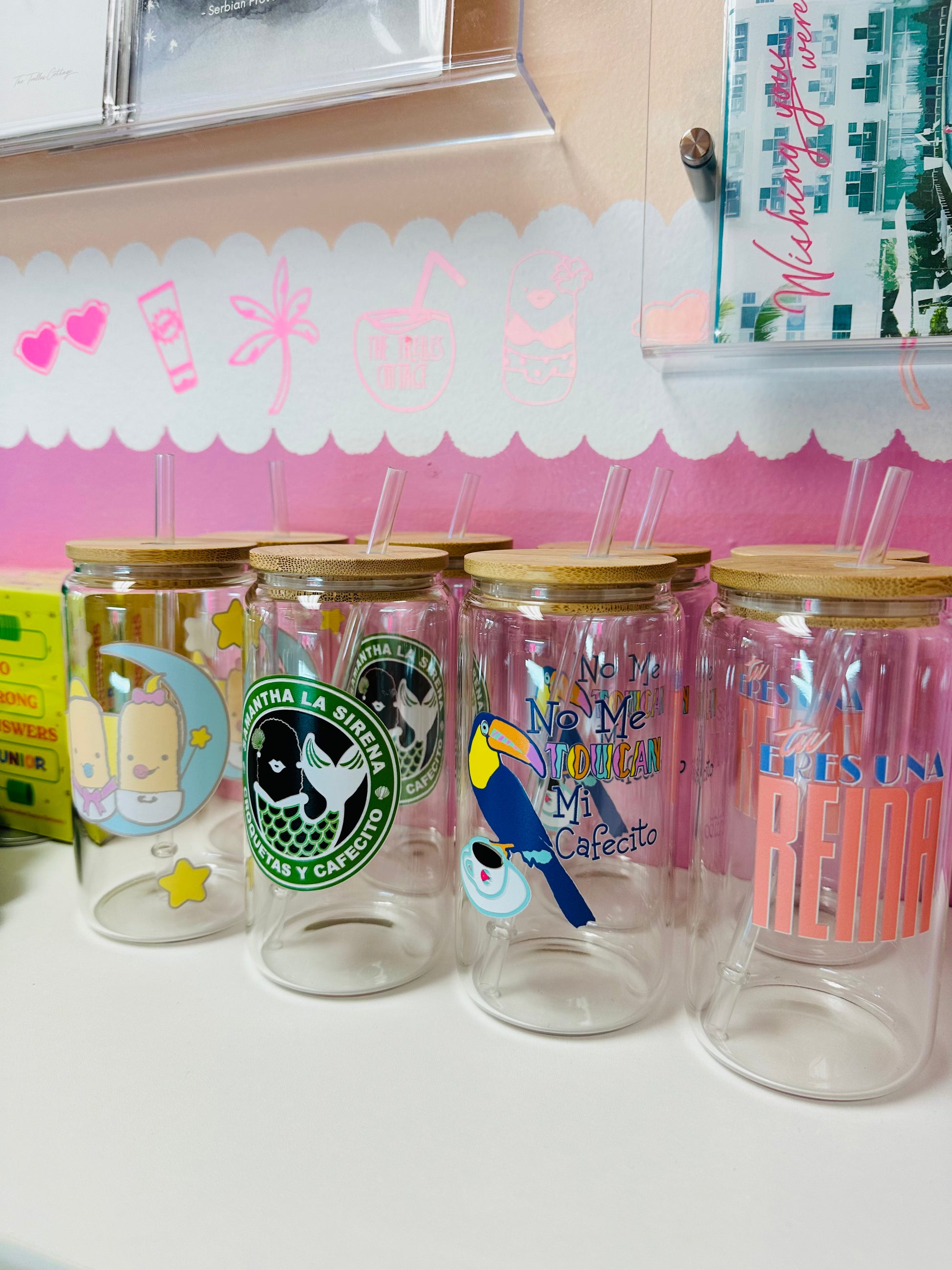 No Me Toucan Mi Cafecito Glass Cup with Lid